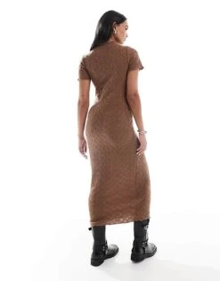 Mama.licious Mamalicious Textured Jersey Midi Dress With Lettuce Edge In Brown For Women Brown Lentil